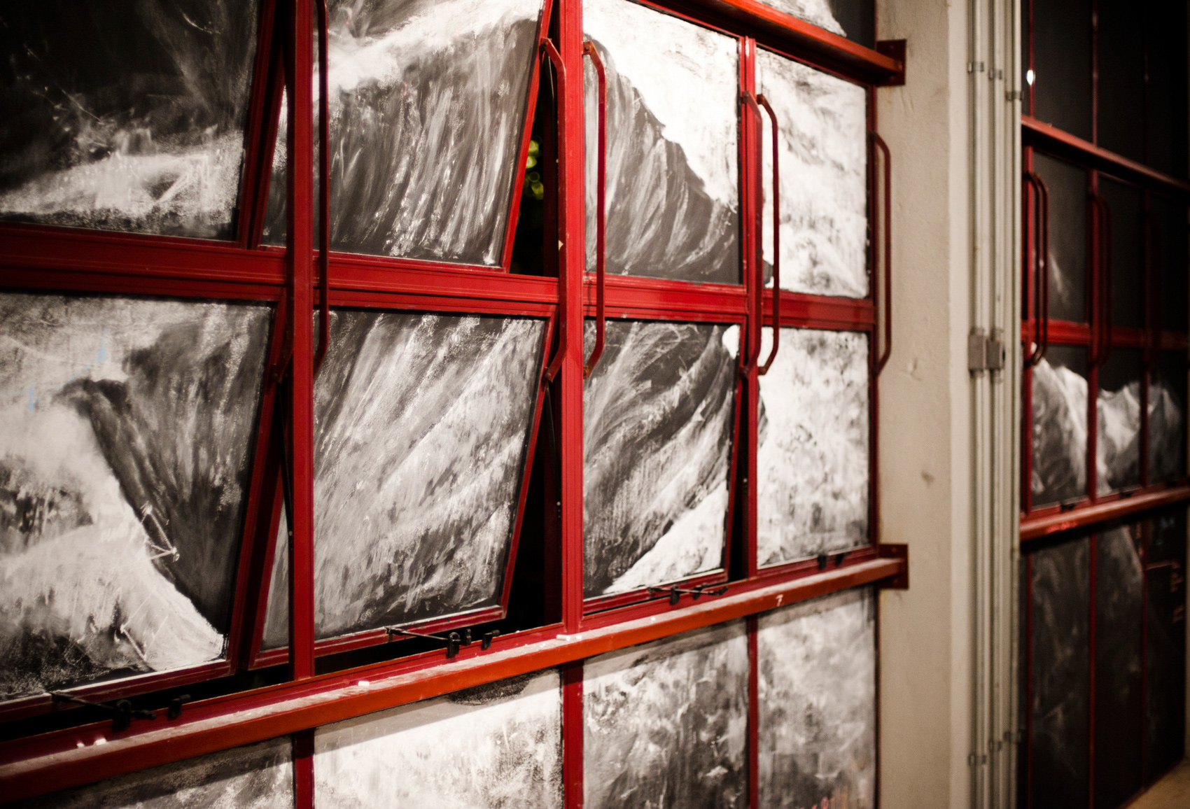 [chalk and black acrylic paint on glass. / 17,16m x 5,51m x 5,15m]