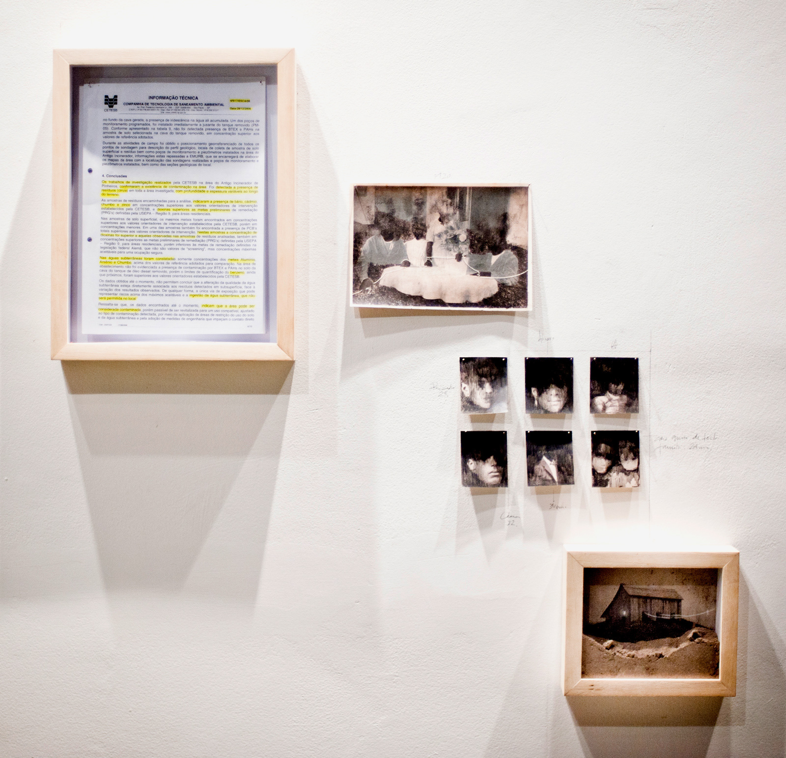 [apropriação de documentos, grafite, lapis dermatográfico, fotografia antiga recuperada e cinzas. 50cm x 60cm ](Políptico)